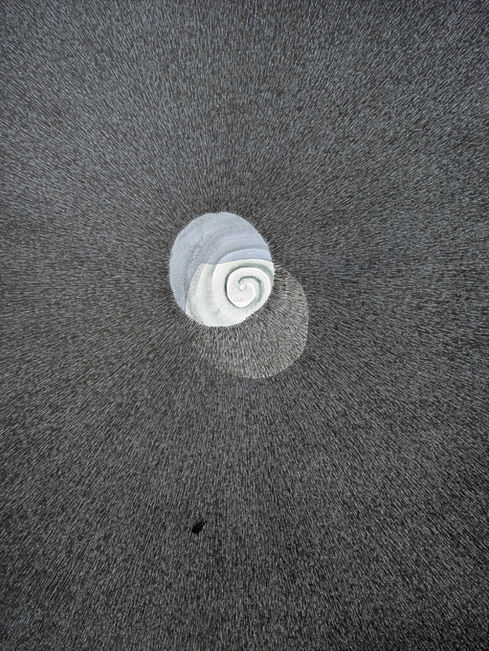 These layers can be understood as representations of dominant thinking patterns. The openings within them mark moments of permeability, instances in which rigid worldviews begin to dissolve, and new perspectives become visible. These empty spaces do not appear as absence, but as a place where perception shifts and new possibilities of being become visible.